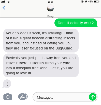 Later that night I messaged my friend to tell him it was a success, and he was excited for me. He told me he's also excited for his friend who makes it because due to the effectiveness of BugGuard at getting rid of mosquitoes they’re selling out quickly. So if you’re reading this blog and want one, I suggest grabbing yours sooner than later before they sell out for the summer. Because this will be the best bug control you put in your yard this year.